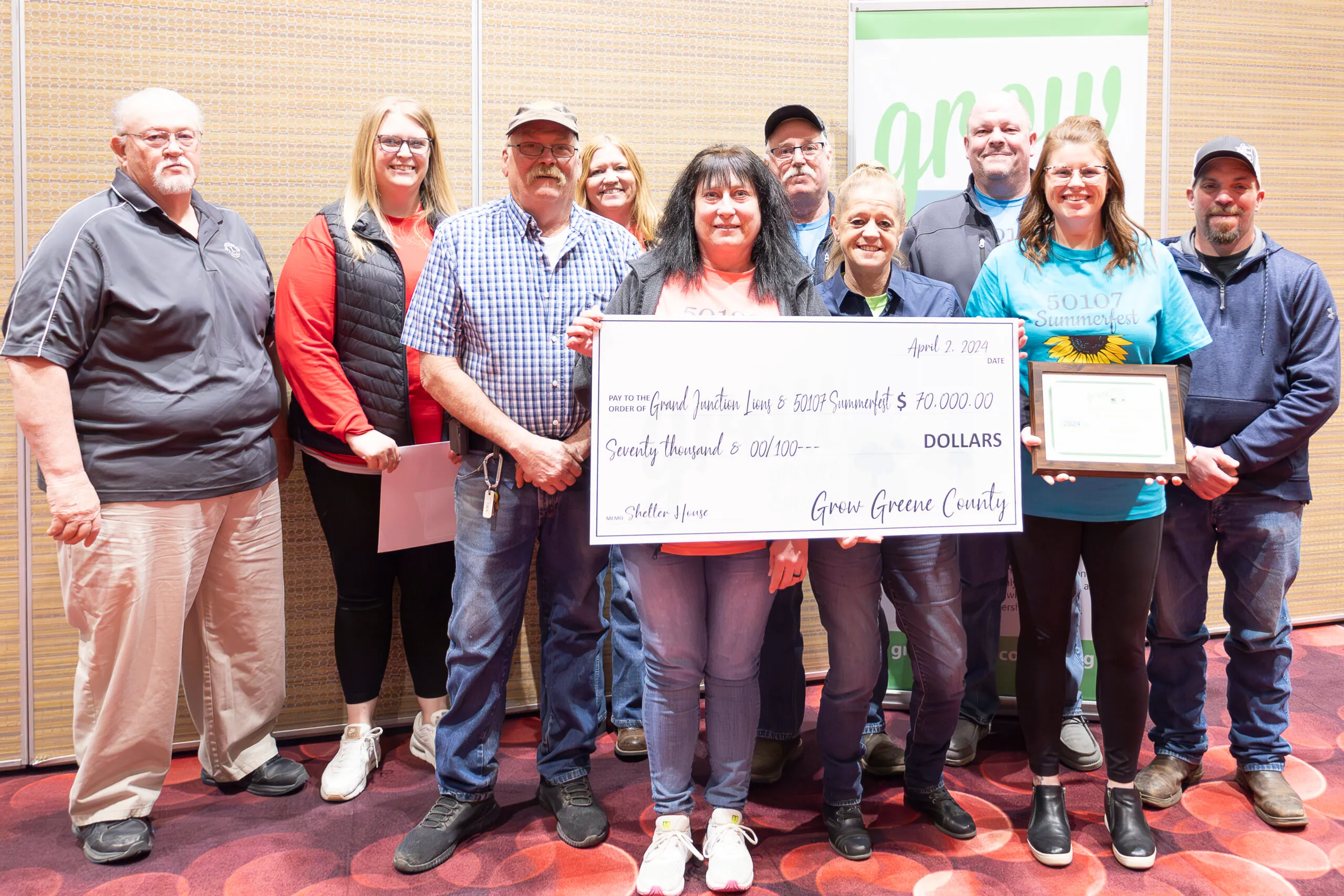 Grand Junction Lions & 50107 Summerfest received $70,000 to assist in building a new shelter house.