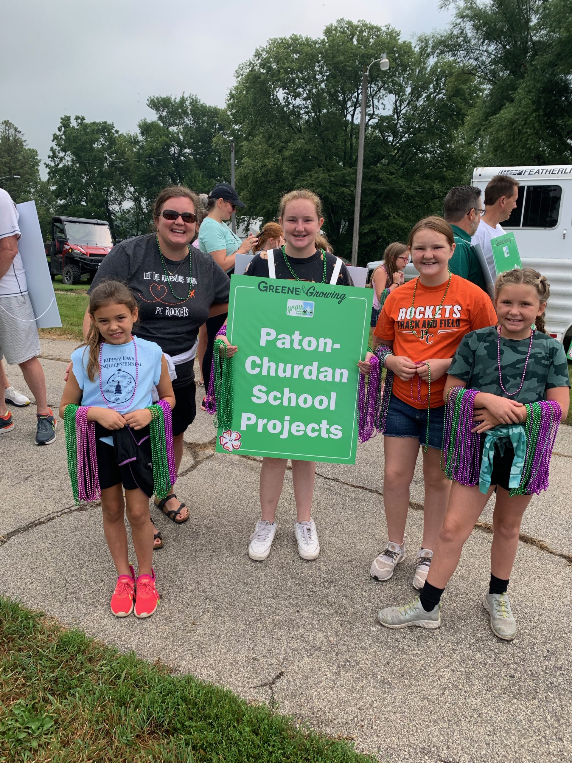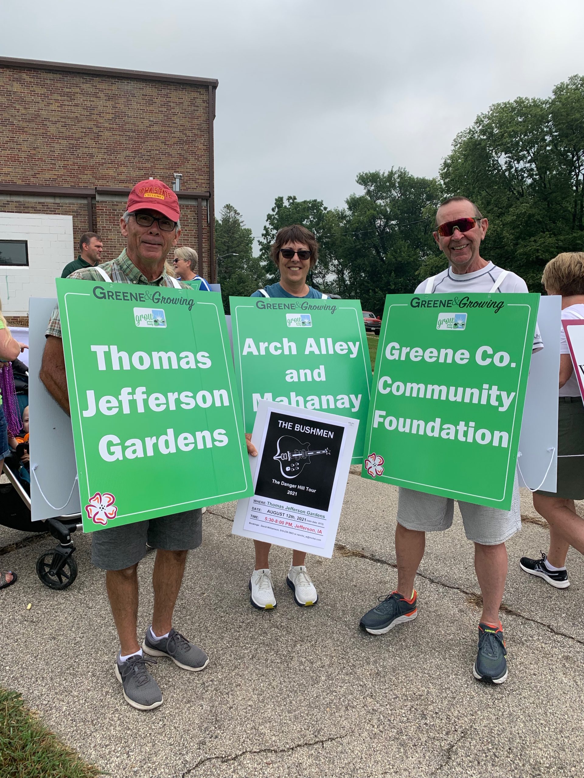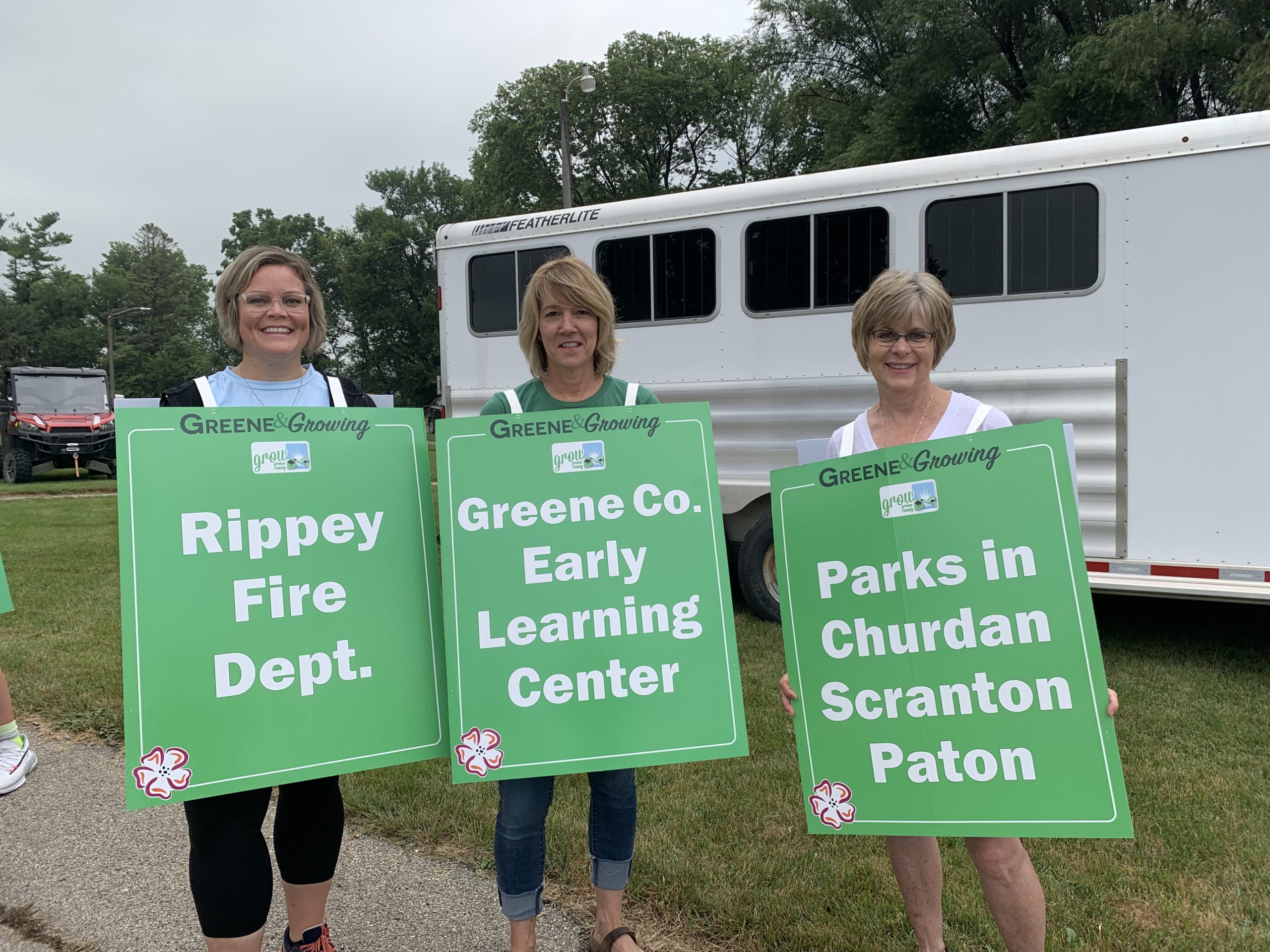 Grow Greene County was excited to be a part of Rippey’s Sesquicentennial +1 Parade on Saturday, July 31. It was a beautiful day to gather volunteers involved in so many awesome projects happening around Greene County supported by funds from the Grow Greene County non-profit. Thanks to these volunteers for wearing the sandwich board signs for some of the larger projects and those who handed out the beads to the parade goers.