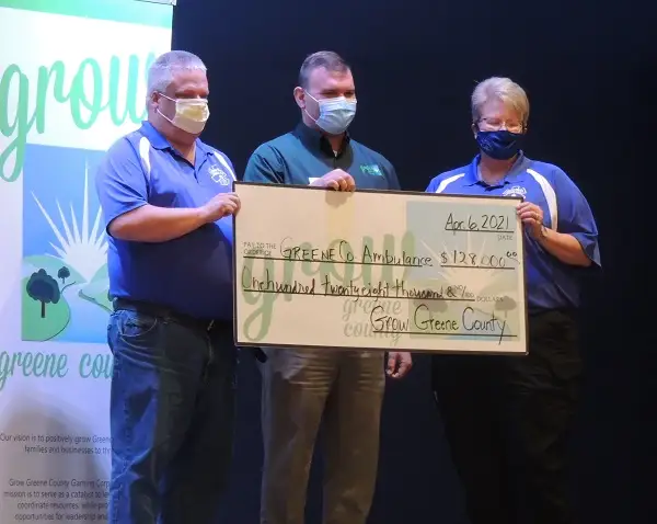 The funds disbursed by Grow Greene County come under the agreement with Wild Rose Entertainment Inc. that the nonprofit receive 5 percent of the local casino’s adjusted gross gaming revenues to distribute to nonprofit, governmental, and charitable organizations. Of that total, 4.1 percent is distributed to projects in Greene County, and 0.9 percent is shared equally with the community foundations in contiguous counties.
